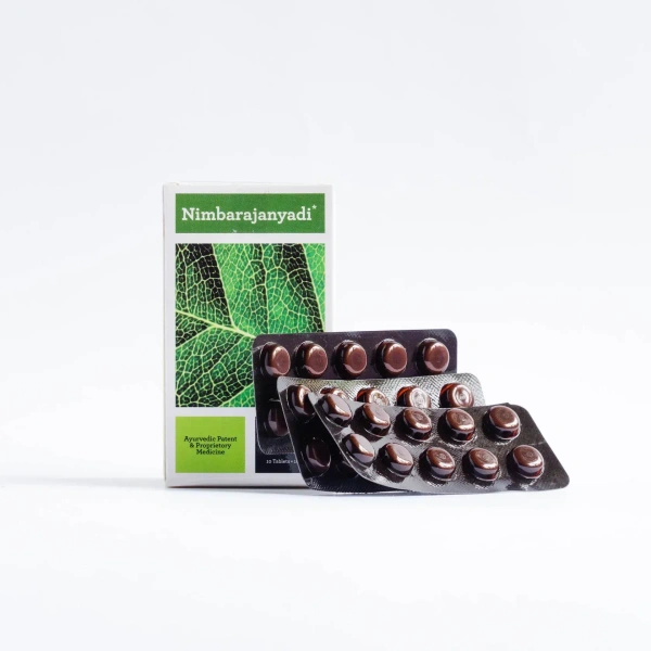 Nimbarajanyadi is a traditional Ayurveda remedy for cough, breathlessness, lack of taste and appetite. It includes the ingredients Trikadu and Trijatha for promoting digestive health. The herbal tablets are known to offer antitussive, anti-inflammatory and expectorant effects with bronchodilator properties as a bonus.