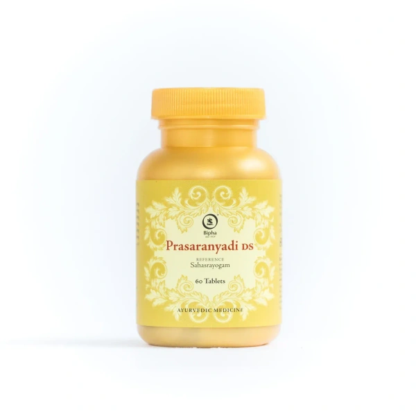 Prasaranyadi DS tablets are prepared from the herbal extracts of Prasaranyadi Kashaya. For DS tablets, the concentration of the Kashaya dose is higher. The preparation of this herbal tablet is mentioned in the Sahasrayogam text in Ayurveda.