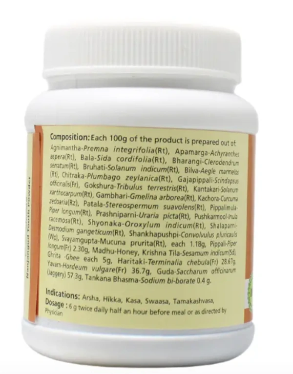 Agastya Rasayana by B.V. Pandit is a classical Ayurvedic formulation known for its effectiveness in managing respiratory health and promoting overall vitality. It is particularly beneficial for respiratory conditions like asthma, chronic bronchitis, and cough, as it supports lung function and clears excess mucus. Enriched with rejuvenating herbs, Agastya Rasayana also enhances immunity and nourishes the body, making it a comprehensive tonic for overall wellness.