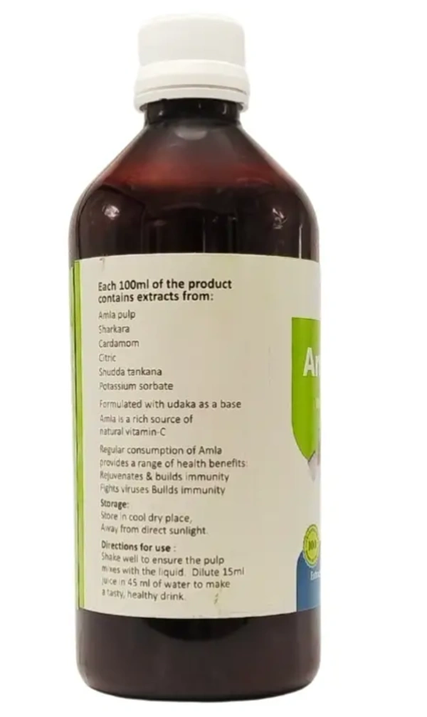 Amla Juice (Syrup) by B.V. Pandit is a potent Ayurvedic formulation derived from fresh Indian Gooseberries (Amla), a renowned superfood rich in Vitamin C and antioxidants. This rejuvenating health drink supports immunity, aids digestion, and promotes overall well-being. It is an ideal choice for those seeking to enhance their health naturally while enjoying the numerous benefits of Amla.