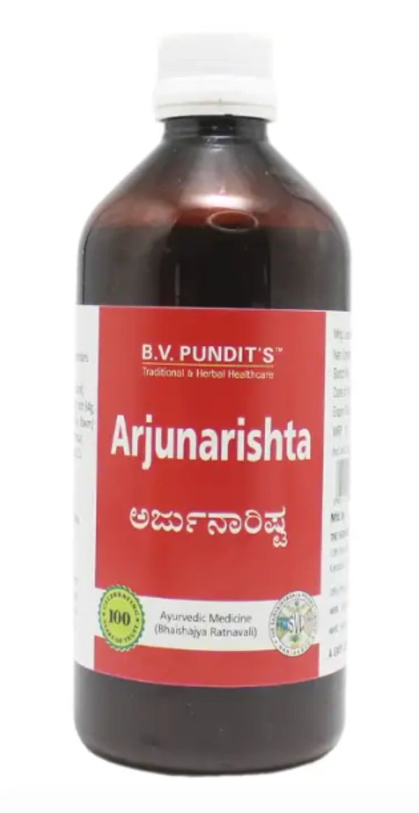 Arjunarishta by B.V. Pandit is a traditional Ayurvedic formulation designed to support heart health and improve overall cardiovascular function. Enriched with the therapeutic properties of Arjuna bark and other complementary herbs, this herbal tonic strengthens the heart muscles, promotes healthy blood circulation, and helps manage cholesterol levels. Its antioxidant-rich composition also aids in reducing oxidative stress and enhancing vitality.