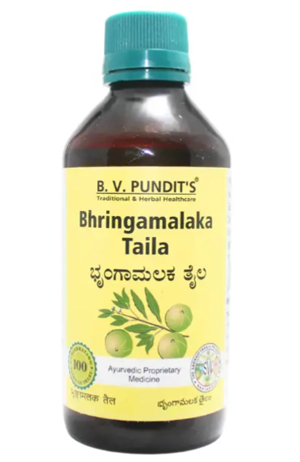 Bhringamalaka Taila by B.V. Pandit is a traditional Ayurvedic hair oil formulated with potent herbs like Bhringraj and Amalaki. Known for promoting hair health, this oil supports hair growth, strengthens hair roots, and helps maintain a healthy scalp. It is ideal for those looking to reduce hair fall, prevent premature graying, and enhance the natural shine and softness of their hair.