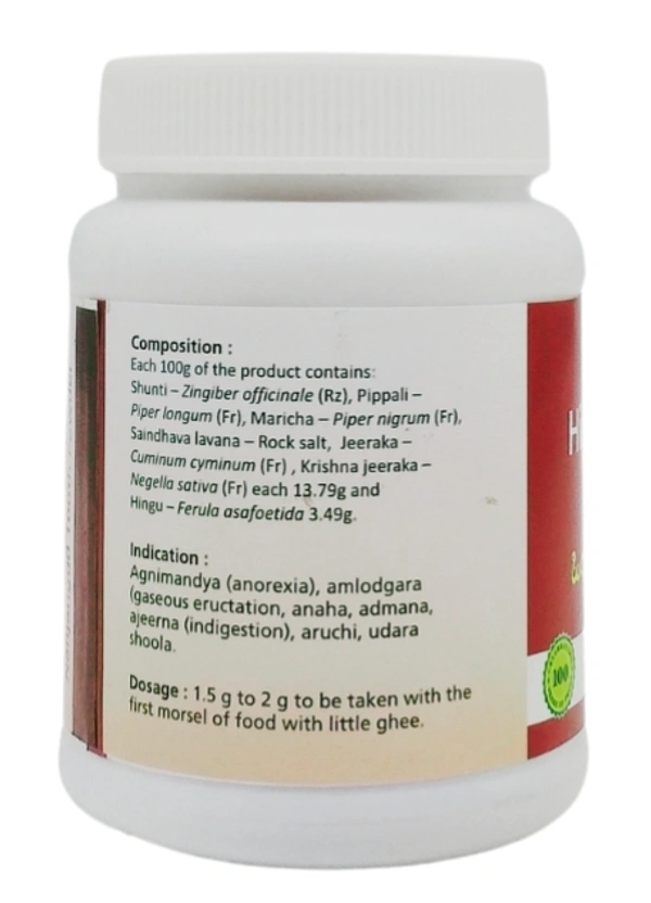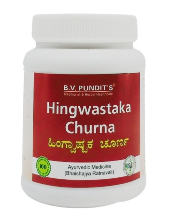 Hingvashtaka Churna by B.V. Pandit is a traditional Ayurvedic herbal powder formulated to provide effective relief from digestive issues such as indigestion, bloating, and gas. A potent blend of asafoetida (hing) along with other powerful herbs, this churna is known for its ability to stimulate digestion, reduce excess gas, and soothe the digestive tract. It also helps balance Vata and Pitta doshas, providing relief from discomfort caused by digestive disturbances.