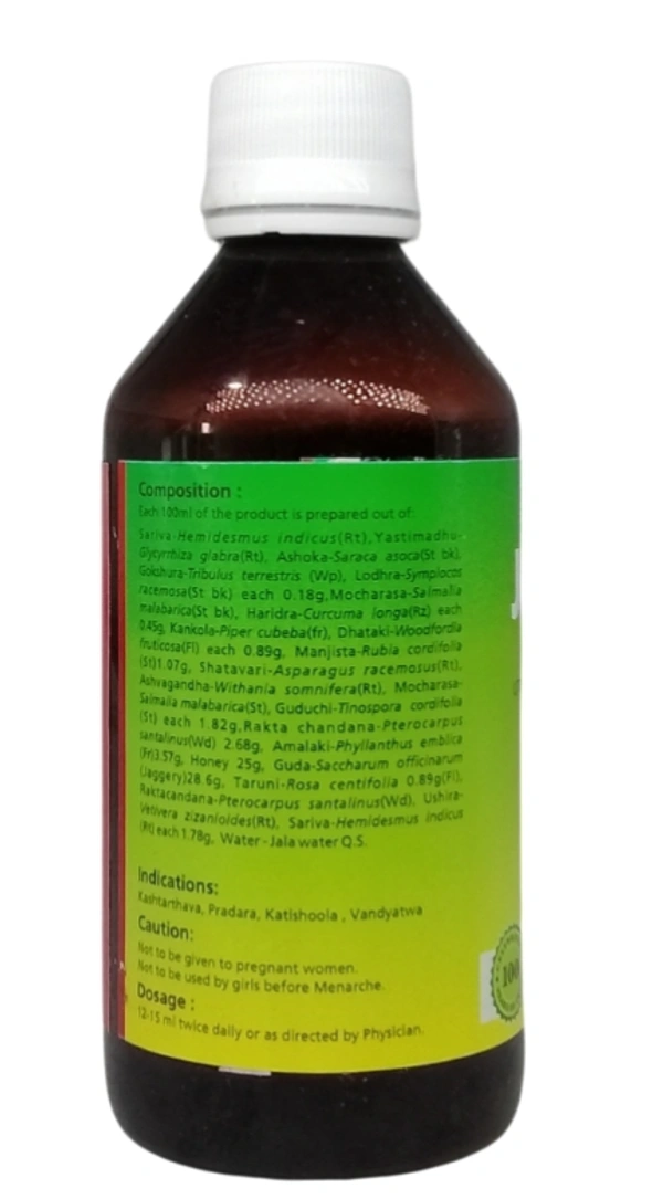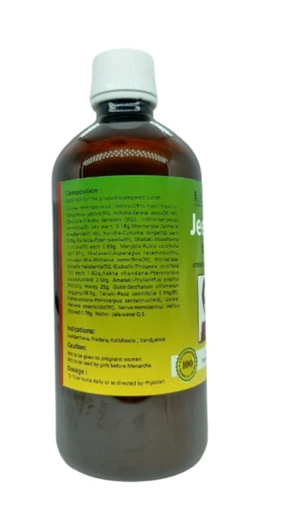 Jeevani Syrup is a potent Ayurvedic supplement specially formulated to support women's reproductive health and overall vitality. This herbal uterine tonic is highly effective in managing menstrual irregularities, dysmenorrhea, menorrhagia, and leucorrhea, while also enhancing fertility and addressing issues like sterility and recurrent miscarriages. The carefully selected blend of powerful herbs provides nourishment, combats anemia, and relieves neuralgic pain and general debility, making it an excellent choice for women seeking balance, energy, and improved uterine health.