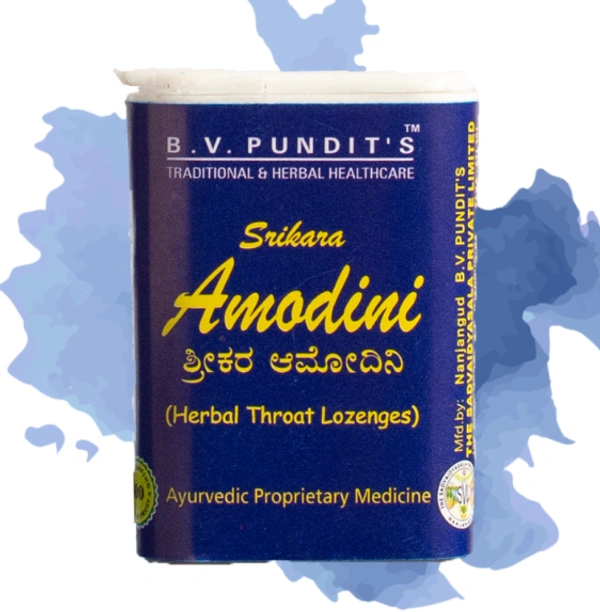B.V. Pandit's Srikara Amodhini Pills are herbal throat lozenges designed to enhance voice quality and address various throat-related issues. These small yet potent pills are particularly beneficial for singers, lecturers, and students, as they impart a pleasant fragrance to the voice and strengthen the vocal cords.