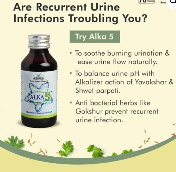 Alka 5 Syrup is an Ayurvedic and herbal formulation designed to support urinary tract health. It is commonly used to manage urinary tract infections (UTIs), kidney stones, burning urination, and other urinary disorders.