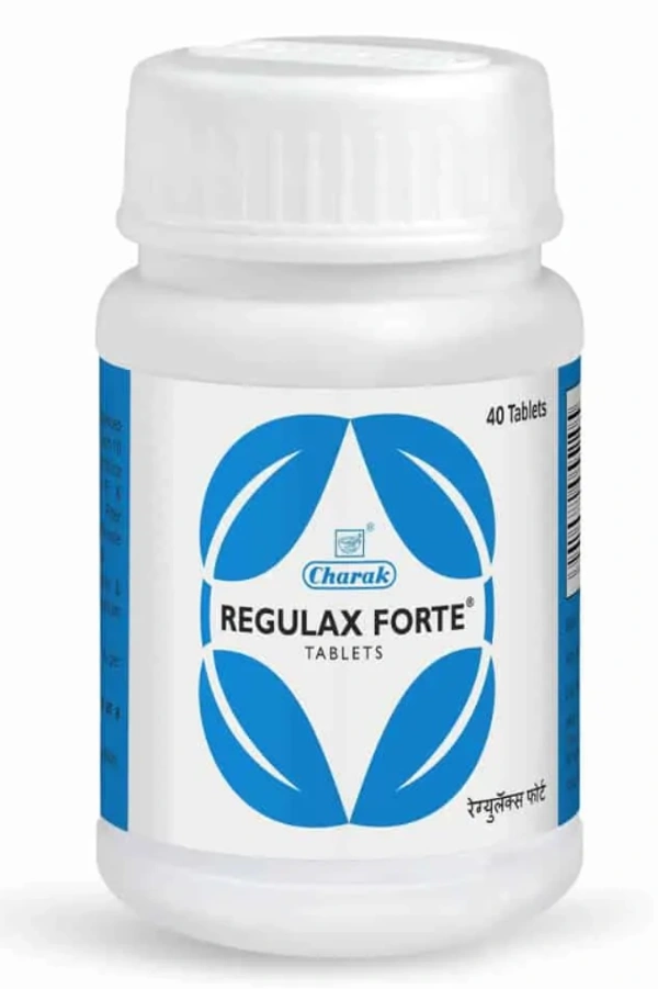 REGULAX FORTE Tablet is a polyherbal laxative. Herbs like Jaipal exerts laxative action and softens the stools. Bhringraj regulates bowel movements. Shuthi helps to improve digestion.