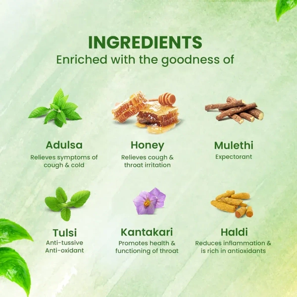 Dabur Honitus Adulsa Cough Syrup contains 2X power of Adulsa. Its ayurvedic non-drowsy formula provides effective relief from 5 types of problems like Cough, Cold, Sore Throat, Phlegm and Chest Congestion. It is enriched with the goodness of Adulsa, Honey, Mulethi, Tulsi, Kantakari and Haldi.
