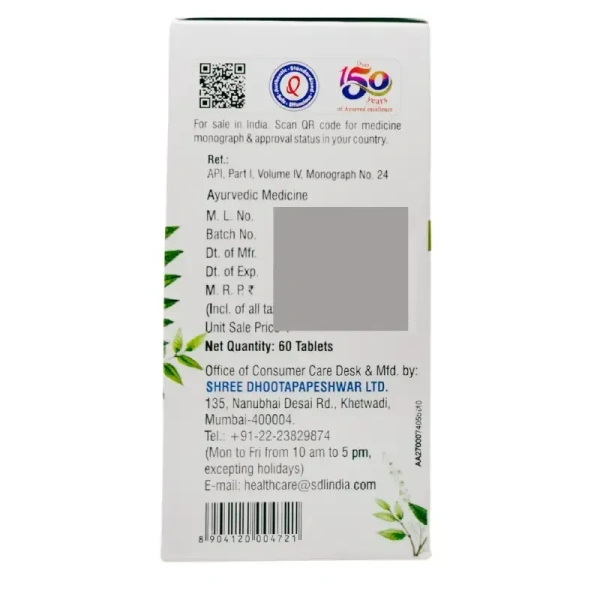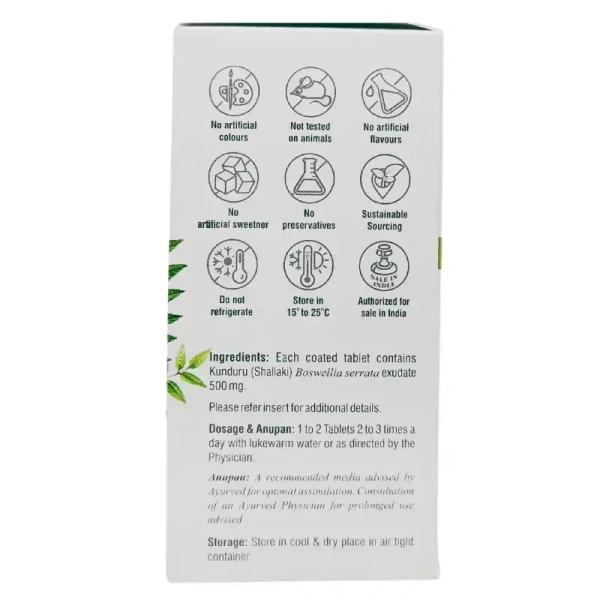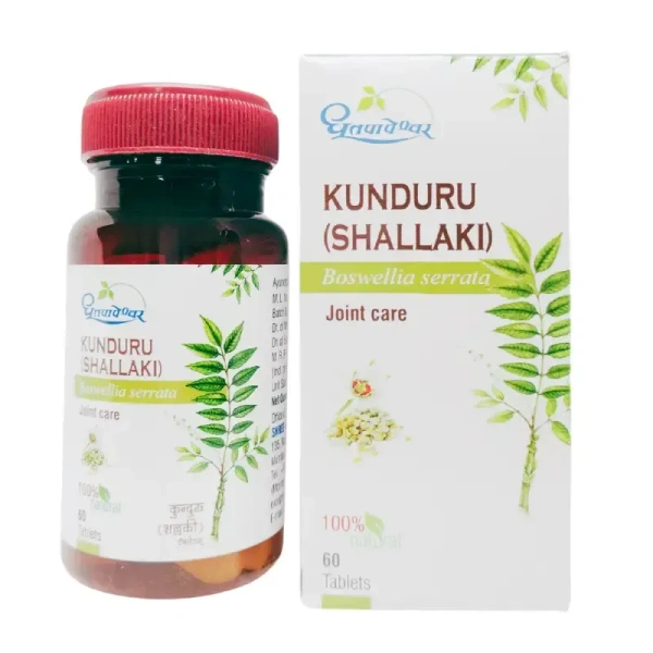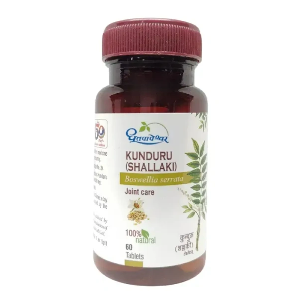 Kunduru (Shallaki) Tablets by Dhootapapeshwar contain pure Shallaki (Boswellia serrata) resin—an Ayurvedic herb known for its potent anti-inflammatory and analgesic properties. Each tablet delivers 500 mg of natural Shallaki powder, helping support joint and musculoskeletal function.