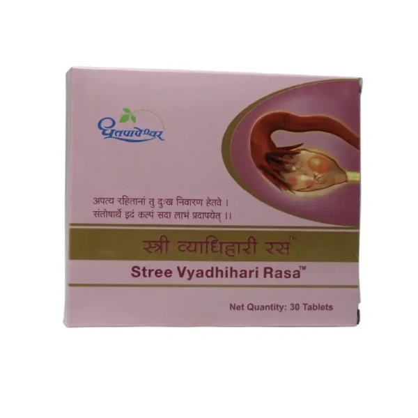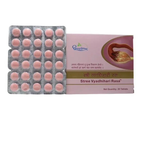 Also known as Stri Vyadhihari Ras, this is a classical Ayurvedic Rasakalpa specifically formulated to support female reproductive health. Manufactured by Shree Dhootapapeshwar Ltd., it combines traditional herbs and mineral-based preparations to balance Vata–Pitta and boost energy.