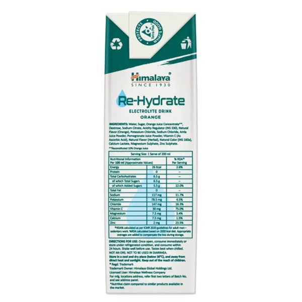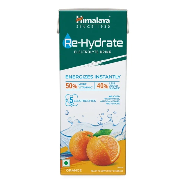 Himalaya Re-Hydrate helps replenish electrolytes, provides instant energy, aids in recovery, and helps combat fatigue and muscle cramps or aches. Re-Hydrate is enriched with the goodness of Pomegranate and Amla and has five electrolytes, including Sodium, Magnesium, Potassium, Calcium, Chloride, and Zinc. Containing 50% more Vitamin C and 40% less added sugar, Re-Hydrate is an ideal choice for the calorie conscious. The electrolyte drink has natural flavors and has no added preservatives or artificial colors. Re-Hydrate is available in two flavors—Apple and Orange.