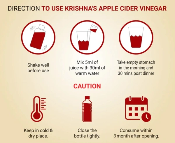 Note: Only 30ml mixed in 250-300ml water should be drunk. Drink Krishna's 'Apple Cider Vinegar' to improve your health and weight loss.