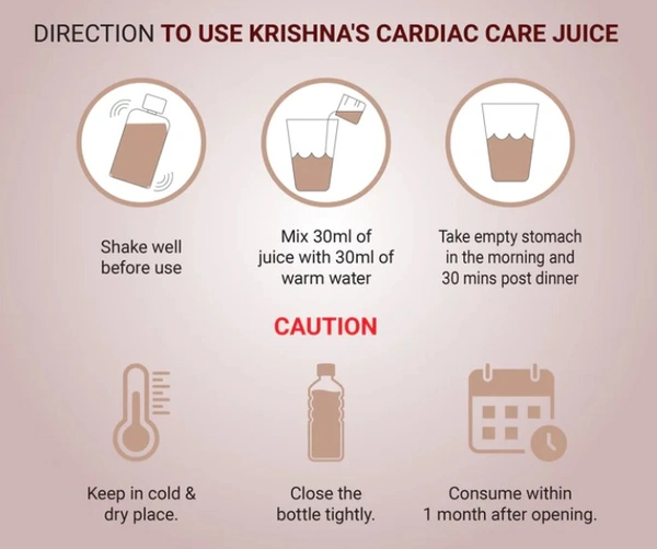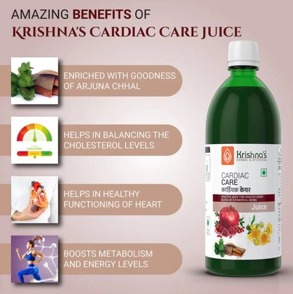 Krishna's Herbal & Ayurveda Cardiac Care Juiceis an Ayurvedic blend of natural herbs and fruits which help in improving heart-related problems. It helps in improving blood circulation throughout your body and strengthens the heart's muscles. It is also helpful in increasing your appetite and making you strong. It gets rid of fatigue and general weakness and is also beneficial in controlling nausea. This is a herbal drink with no added sugar or artificial colourings.