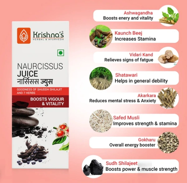 Krishna's Naurcissus juice is beneficial in strengthening muscles and nerves. It strengthens the body’s immune system.