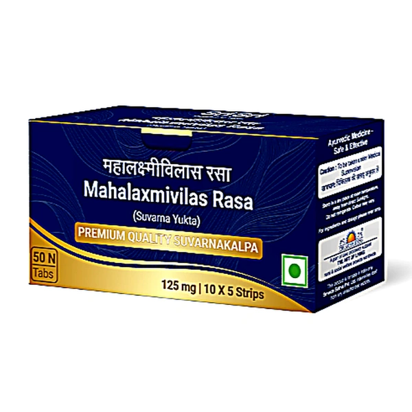 Mahalaxmivilas Rasa is a classical Ayurvedic formulation prepared as per traditional texts and enriched with Suvarna (Gold). It is known for its rejuvenating properties and is widely used in Ayurveda to support immunity, strength, and overall vitality.