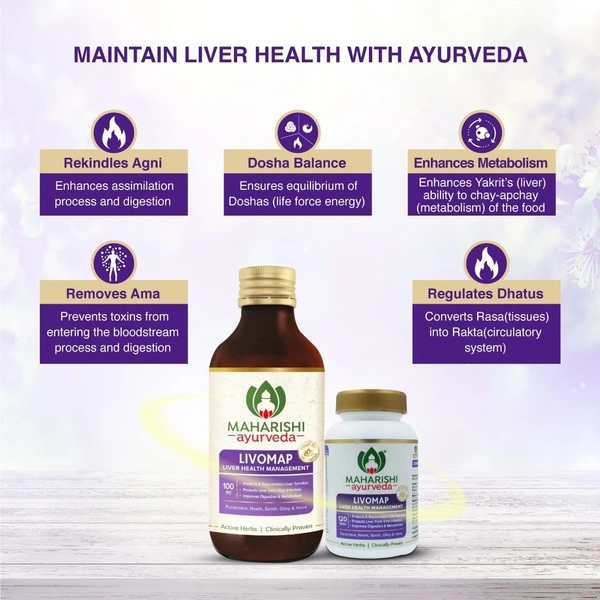 Clinically tested at AIIMS New Delhi, Maharishi Ayurveda LIVOMAP Tablets are formulated to enhance liver function and address issues related to liver health. These tablets act as hepatoprotective agents, being rich in antioxidants and anti-inflammatory ingredients that support liver detoxification and assist in the management of Non-Alcoholic Fatty Liver (NAFLD). Additionally, Livomap enhances metabolism, increases appetite, prevents liver damage, and effectively eliminates toxins, all contributing to the overall well-being of the liver.