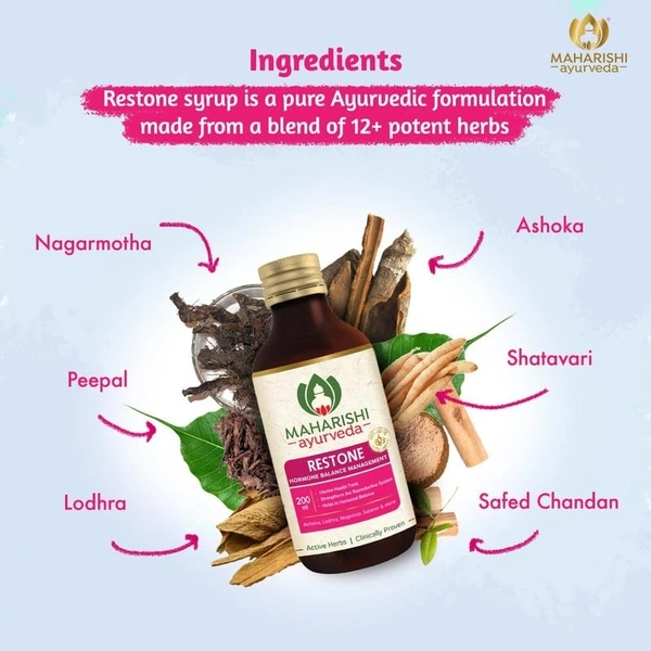 Maharishi Ayurveda Restone Syrup is a synergistic combination of time-tested herbs that can help maintain a healthy menstrual cycle. This wellness syrup helps balance hormones, regulate the period cycle and flow, and alleviate symptoms of PCOD and PCOS. This potent Rasayana can regulate women's menstrual cycles without causing any side effects.
