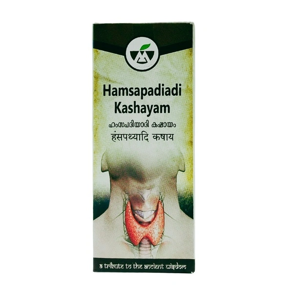 Hamsapadiadi Kashayam by Malabar Ayurveda is a classical Ayurvedic formulation designed to support optimal thyroid function and combat thyroid dysfunctions. This herbal remedy aids in balancing TSH, T3, and T4 levels while regulating metabolism, helping address symptoms of both hypothyroidism and hyperthyroidism. Its blend of five thyroid-supportive herbs promotes balanced metabolism and sustained energy levels.