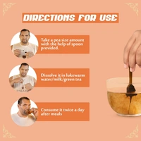 - How To Use - Take a pea-sized amount of Upakarma Ayurveda Pure Shilajit Resin Form with Safed Musli and dissolve it in 100 - 200 ml of lukewarm milk or water. Stir it thoroughly and drink. For best results, it is advisable to consume twice a day or as directed by the physician