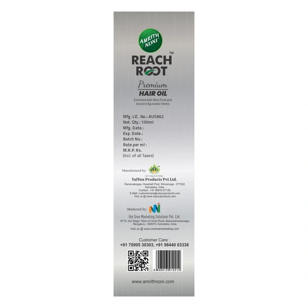 - Enriched with Noni fruit & ancient ayurvedic herbs: Amrith Noni Reach Root Premium Hair Oil is a blend of natural ingredients such as Noni, Bringharaj, Onion, Hibiscus, Sourabhanimba, Neelini, Amla, Coconut, Methi, Madayantika, Tulsi, Neem, Mathsyakshi, Tila.