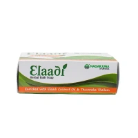 Nagarjuna Elaadi Soap is an Ayurvedic herbal formulation designed to cleanse, nourish, and revitalize the skin. Infused with the powerful combination of Eladi Ganam and Thuvaraka Thailam, this soap offers a luxurious bathing experience while promoting deep hydration and skin rejuvenation. Its anti-inflammatory and antioxidant properties help protect the skin from irritation and environmental stressors, ensuring a healthy and radiant complexion. Ideal for daily use, it provides a soothing cleanse without stripping away moisture.