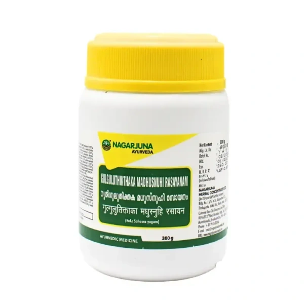 Nagarjuna Gulguluthikthaka Madhusnuhi Rasayanam, an Ayurvedic formulation designed to support overall health and vitality.