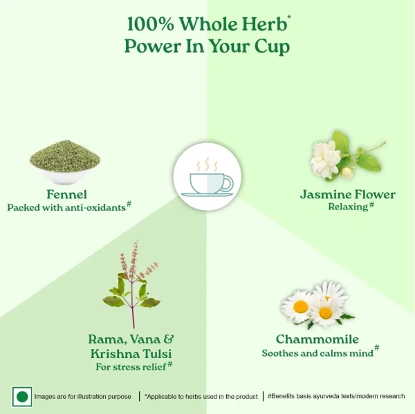 - Rich in Antioxidants: Tulsi and green tea are known for their powerful antioxidant properties, helping you combat stress and promote overall well-being.
