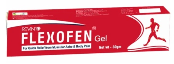 Flexofen Gel : is a fast acting deep penetrating pain relieving gel that is applied topically for the relief of aches and pains of muscles & joints, bruises and sprains.
