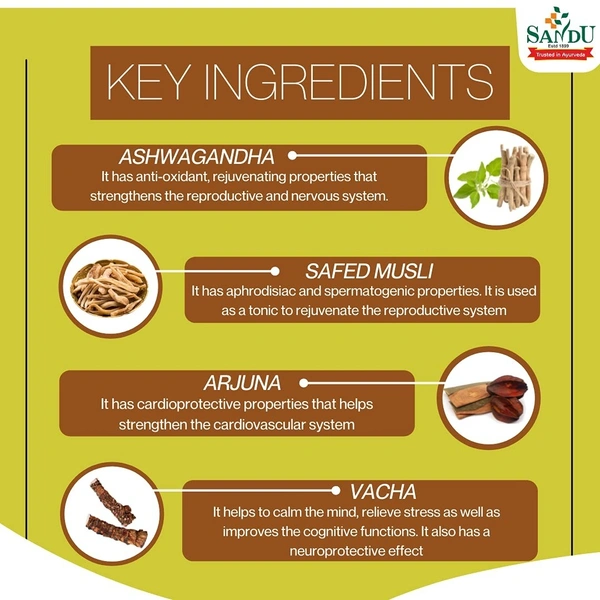 Some variants may also include Shatavari, Jaggery, Ginger, Manjishtha, Arjuna, among other synergistic botanicals.