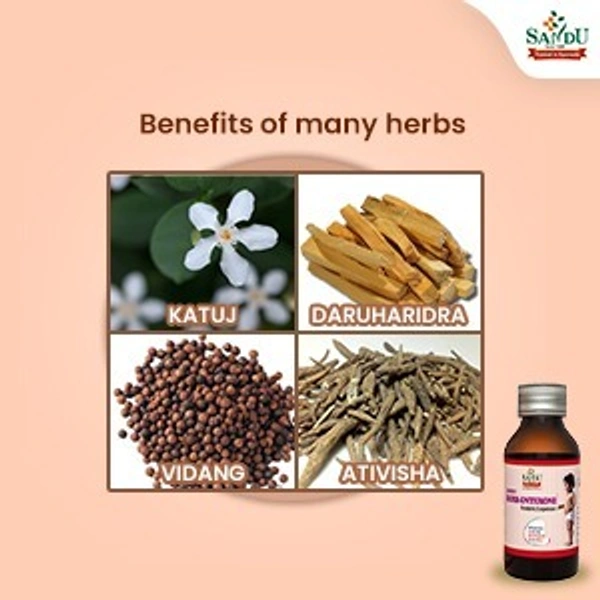 Suitable during teething, irritable bowel, and worm infestation in children under 5 years.