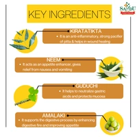 The formulation includes a potent blend of Ayurvedic botanicals renowned for soothing digestion:
