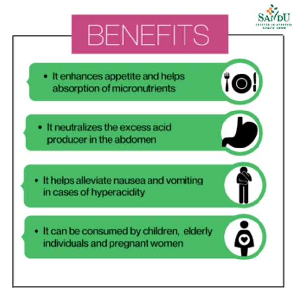 Mitigates hyperacidity, heartburn, indigestion by neutralizing excess stomach acid.