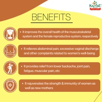 Therapeutic benefits include relief from abdominal pain, lower backache, fatigue, excessive vaginal discharge, menstrual discomfort, and generalized weakness. It also enhances vitality and immunity as a rejuvenator.