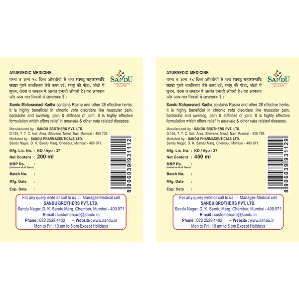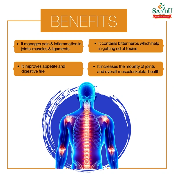 Sandu Maha Rasnadi Kadha is a traditional Ayurvedic decoction designed to support musculoskeletal and nervous system health. It’s commonly used for: