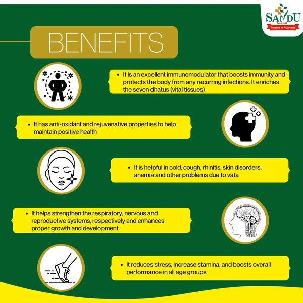 Rejuvenation: nourishes seven Dhatus, supports general strength and vitality