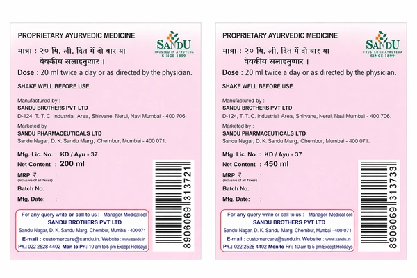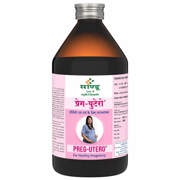 Sandu Preg Utero Syrup is a herbal tonic tailored for use through all stages of pregnancy, and during lactation. It addresses nutritional needs of both mother and baby, while helping alleviate common pregnancy complaints such as early nausea, anemia, weakness, and digestive discomfort. This formulation also supports postpartum lactation and overall uterine health.