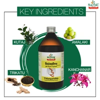 A classical Ayurvedic fermented tonic (Arishta) produced by Sandu Pharmaceuticals, Vidangarishta is traditionally employed as a powerful deworming and digestive health elixir. It helps control various types of intestinal worms (roundworms, pinworms) while relieving associated digestive discomfort like bloating, nausea, diarrhea, and poor appetite.