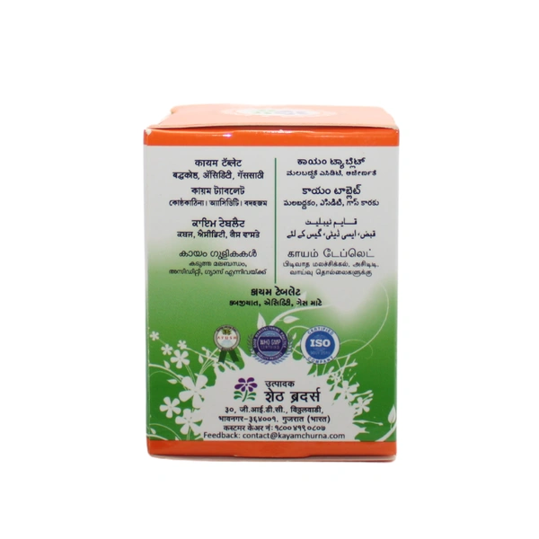 Kayam Tablet / Churna range by Sheth Brothers—a proprietary Ayurvedic laxative designed for digestive support.