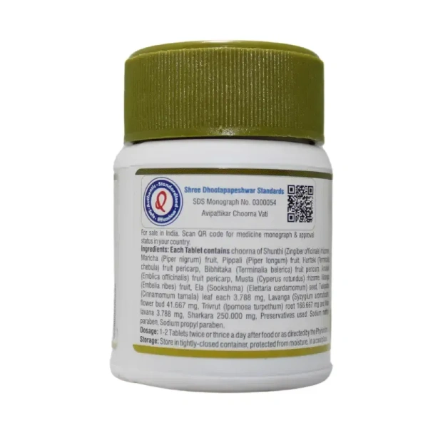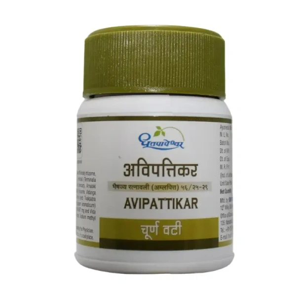 Avipattikar Churna Vati 60 Tablets by Shree Dhootapapeshwar is a classical Ayurvedic formulation in tablet form. It is primarily used to alleviate hyperacidity, gastritis, heartburn, flatulence, bloating, indigestion, and related digestive issues. It’s especially effective for symptoms associated with excess Pitta in the gastrointestinal tract.