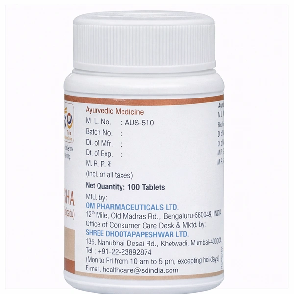 Recommended Dose: 1–2 tablets, taken 2–3 times daily, preferably after meals, with lukewarm water or herbal liquid carriers like Chandanasava or Usheerasava