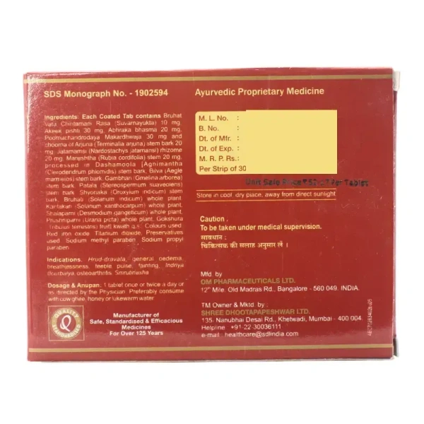 Shree Dhootapapeshwar Hrudroga Chintamani Rasa (30 tablets):
