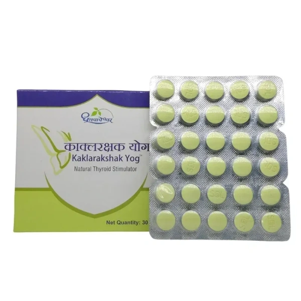 Kaklarakshak Yog is an Ayurvedic, non-hormonal tablet-based formulation specifically designed to support thyroid gland function—especially in cases of hypothyroidism (termed Kaklak Granthi Kriyalpata).