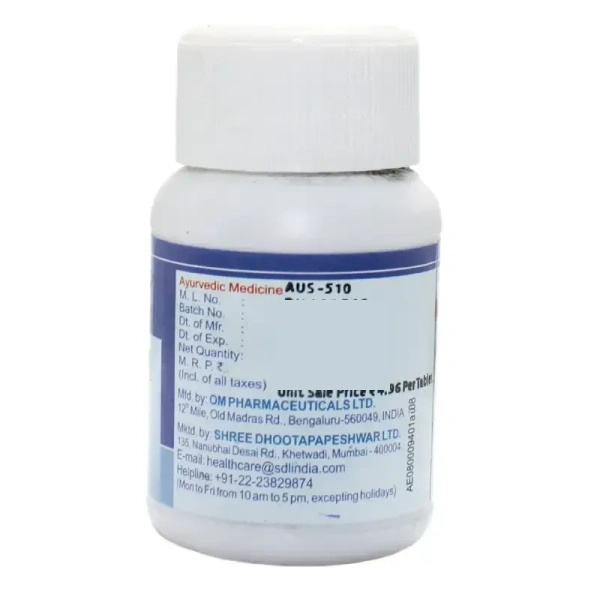 Typical dosage: 1–2 tablets, taken 2–3 times daily with honey or lukewarm water, before or after meals as advised by an Ayurvedic physician.