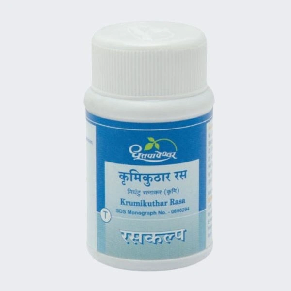Krimikutar Ras (also known as Krumikuthar Ras) is a classical Ayurvedic formulation primarily used for intestinal worm (helminth) infestations. Its therapeutic scope also extends to improving digestion, alleviating anemia, and supporting general digestive comfort.