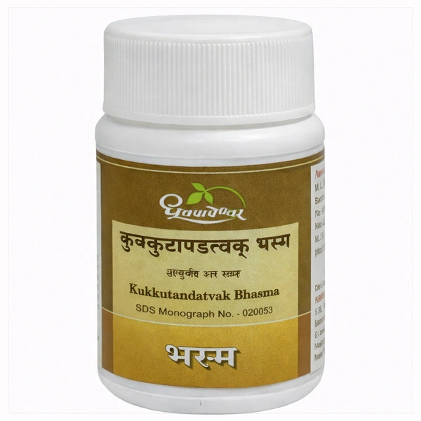 Kukkutandatvak Bhasma is a classical Ayurvedic formulation made from purified and incinerated eggshell (Kukkutanda Tvak). It is processed with Changeri Swarasa (juice of Oxalis corniculata) to enhance absorption and therapeutic efficacy. This bhasma is a rich natural source of bioavailable calcium.