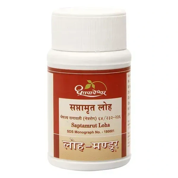 Saptamrut Loha is a classical Ayurvedic iron-based formulation used primarily for blood purification, anemia, and general debility. It combines iron with herbal extracts to enhance absorption and improve overall hematologic health.