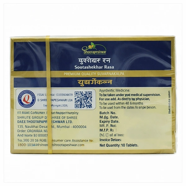 Sootashekhara Ras (Gold) by Shree Dhootapapeshwar is a premium Ayurvedic formulation designed to address Pitta and Vata dosha imbalances. This potent Suvarnakalpa is particularly beneficial for conditions like hyperacidity, digestive disturbances, and related ailments.