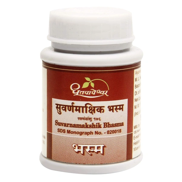 Suvarnamakshik Bhasma is a traditional Ayurvedic bhasma, crafted from purified Suvarnamakshik (a mineral predominated by iron). It's revered as a rasāyana, designed to strengthen the body, balance Pitta, and support overall vitality.