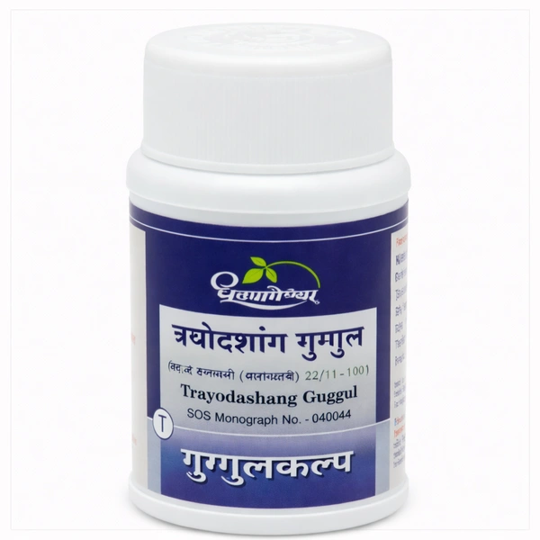 Trayodashang Guggul (also spelled Trayodashanga Guggulu) is a classical Ayurvedic tablet formulation produced by Dhootapapeshwar, rooted in the Bhaishajya Ratnavali – Vatavyadhi formulations.