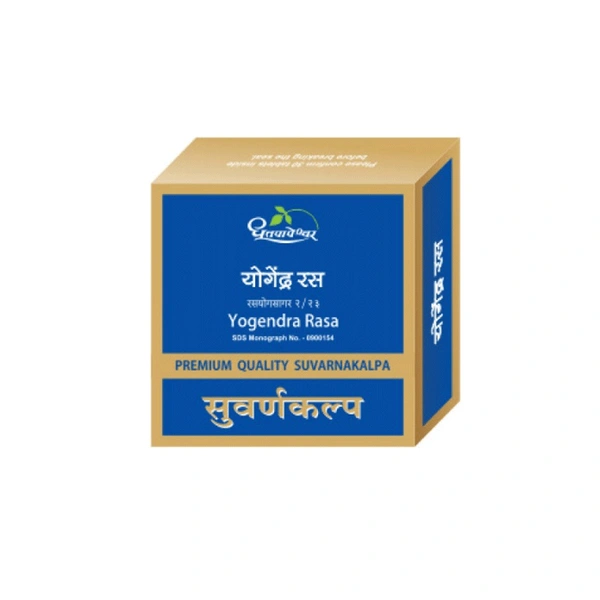 Yogendra Ras (Gold), also known as a Swarna-Kalpa formulation, is a classical Ayurvedic herbo-mineral remedy enriched with Suvarna Bhasma (gold calx) and other potent metallic ingredients. It serves as a rejuvenating tonic with applications across neurological, respiratory, cardiac, digestive, and general vitality domains.